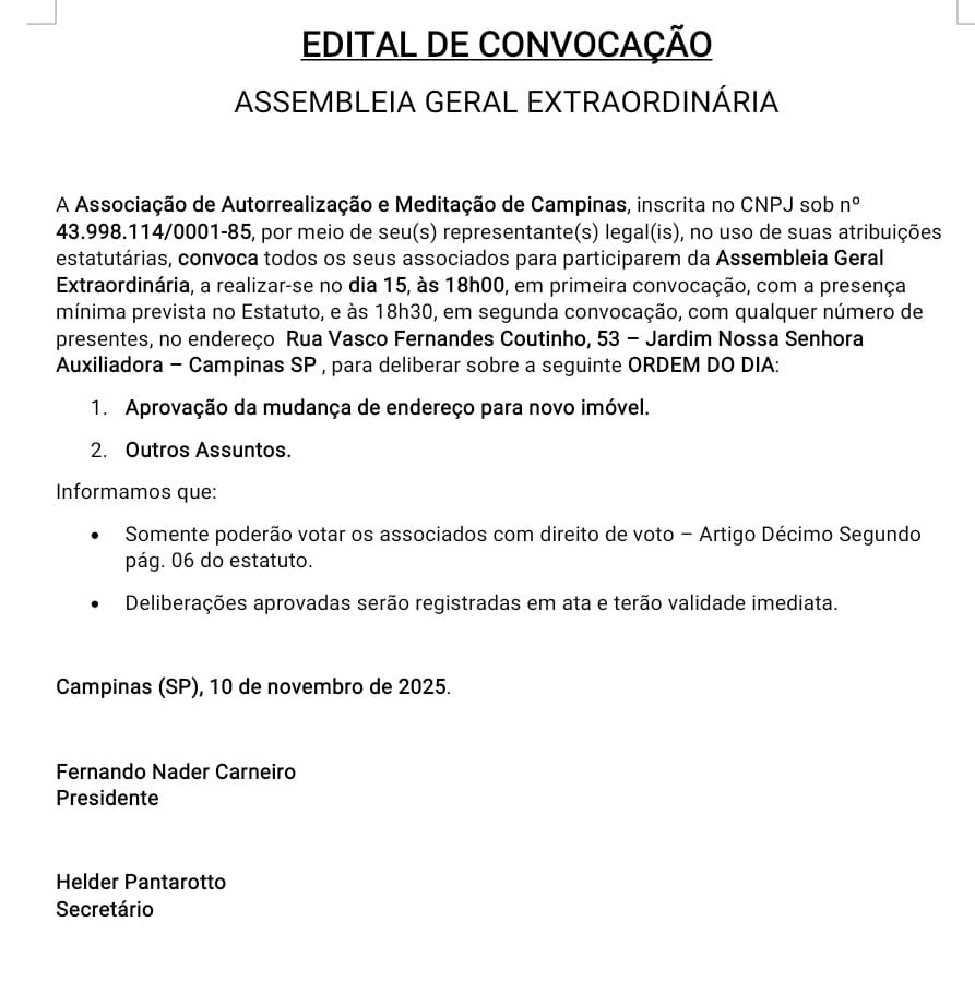 ASSEMBLEIA EXTRAORDINARIA - DIA 15 DE NOVEMBRO 2025